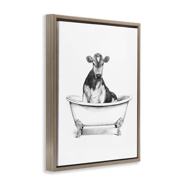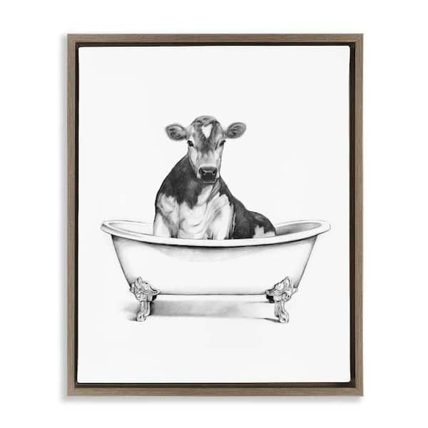 Antique Tub with Cow by Victoria Borges Brown Floater Frame Animal Graphic Art Print 31 in. x 25 in.