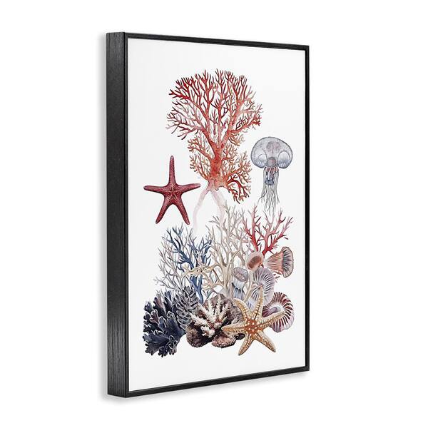 Aquatic Animals and Coral by Ramona Murdock Black Framed Animal Giclee Art Print 18 in. x 12 in.