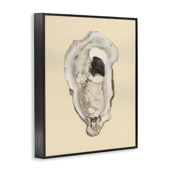 Aquatic Oyster on Beige by Michael Willett Black Framed Coastal Giclee Art Print 20 in. x 16 in.
