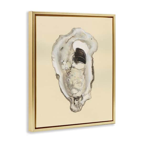 Aquatic Oyster on Beige by Michael Willett Gold Floater Frame Coastal Graphic Art Print 21 in. x 17 in.