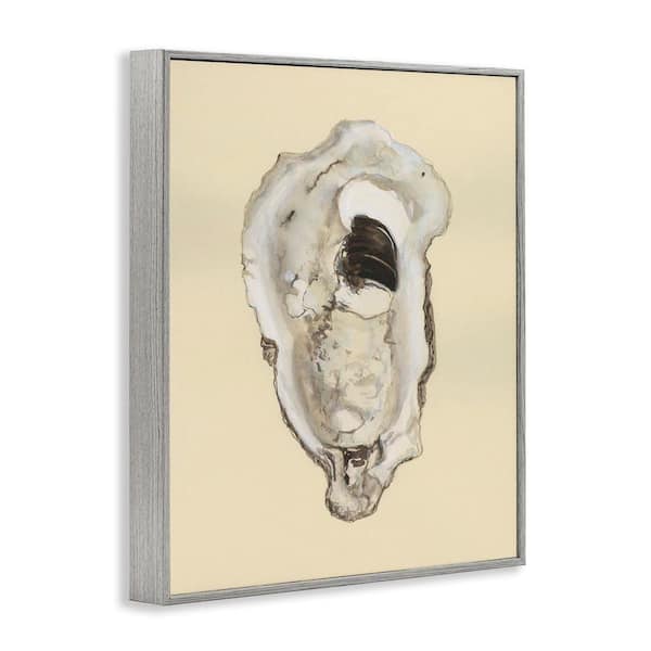 Aquatic Oyster on Beige by Michael Willett Gray Framed Coastal Giclee Art Print 30 in. x 24 in.