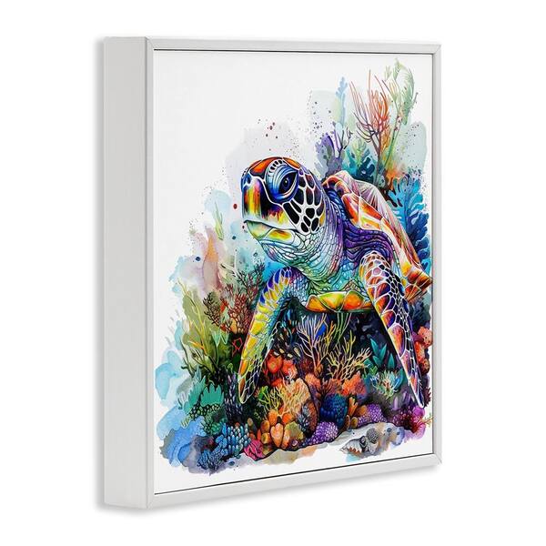 Aquatic Sea Turtle by LSR Design Studio White Framed Animal Giclee Art Print 12 in. x 12 in.