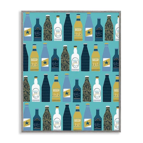 Arranged Beer Bottles by Angela Nickeas Gray Framed Food Giclee Art Print 30 in. x 24 in.