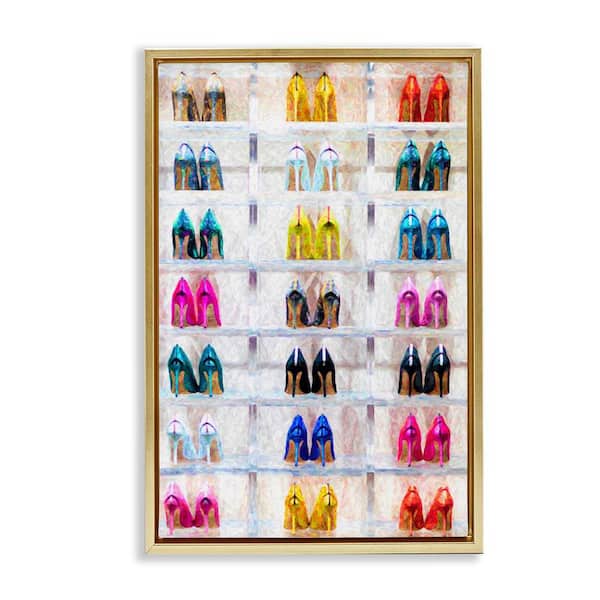 Arranged High Heels by Graffi tee Studios Gold Floater Frame Abstract Graphic Art Print 31 in. x 21 in.