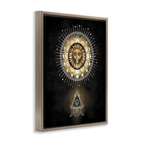 Astral Symbols and Sun by Oliver Jeffries Brown Floater Frame Religious Graphic Art Print 31 in. x 25 in.
