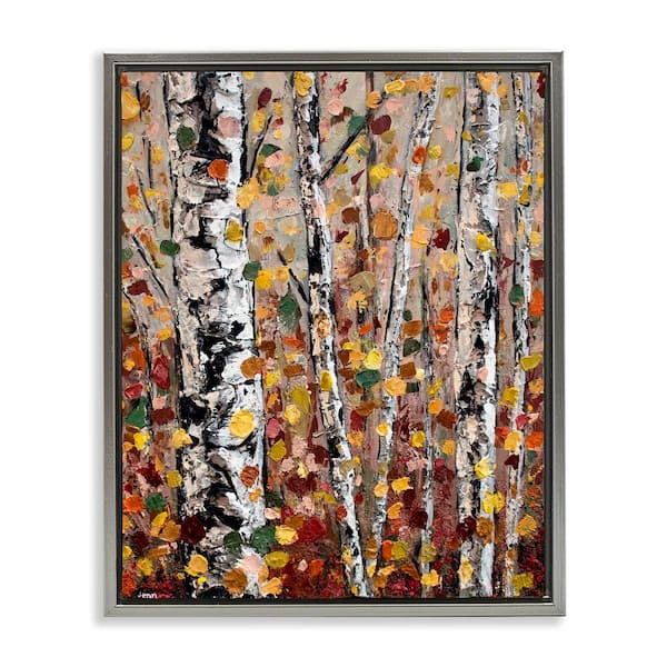 Autumn Birch Trees Abstract Leaves by Jen Seeley 1-Piece Gray Floater Frame Nature Graphic Art Print 17 in. x 21 in.