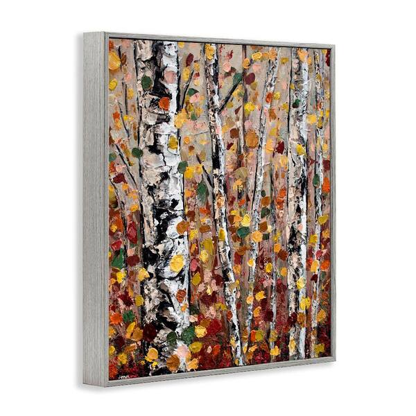 Autumn Birch Trees Abstract Leaves by Jen Seeley 1-Piece Gray Framed Nature Giclee Art Print 16 in. x 20 in.