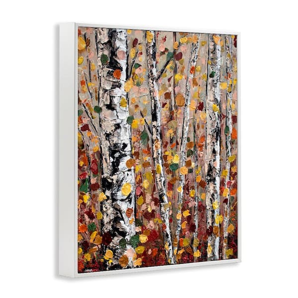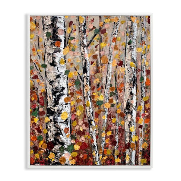 Autumn Birch Trees Abstract Leaves by Jen Seeley 1-Piece White Framed Nature Giclee Art Print 20 in. x 16 in.