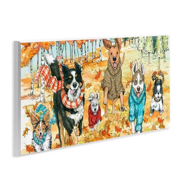 Autumn Dog Park Animals Running by Sherri Buck Baldwin Unframed Graphic Animal Art Print 7 in. x 17 in.