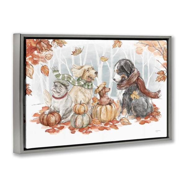 Autumn Fun Dogs by Mary Urban Gray Floater Frame Graphic Typography Art Print 17 in. x 25 in.