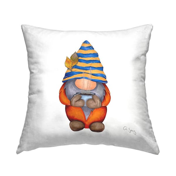 Autumn Gnome Steaming Coffee Sip Orange Print Polyester 18in. X 18in. Throw Pillow