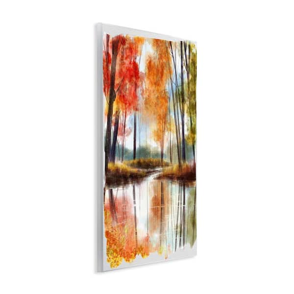 Autumn Lake Reflection Open Meadow Fall Foliage Trees by Ziwei Li Unframed Graphic Nature Art Print 10 in. x 15 in.