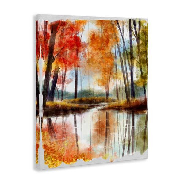 Autumn Lake Reflection Open Meadow Fall Foliage Trees by Ziwei Li Unframed Graphic Nature Art Print 20 in. x 16 in.