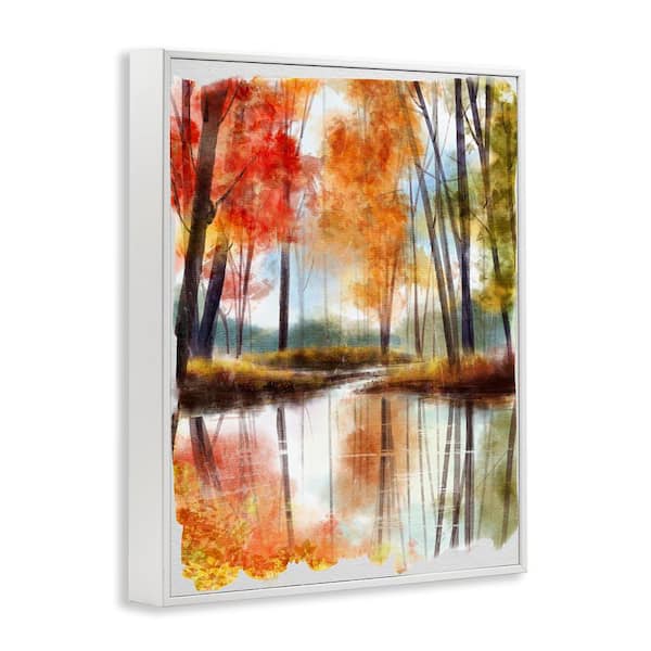 Autumn Lake Reflection Open Meadow Fall Foliage Trees by Ziwei Li White Framed Graphic Nature Art Print 24 in. x 30 in.