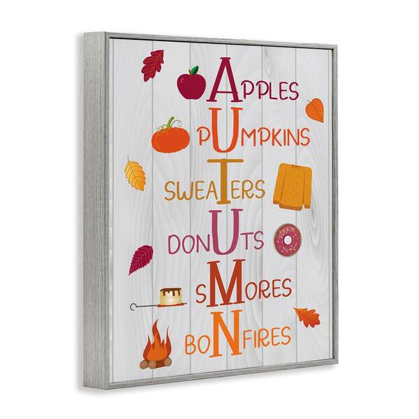 Autumn Letters Seasonal Words by Linda Birtel Gray Framed Graphic Typography Art Print 24 in. x 30 in.