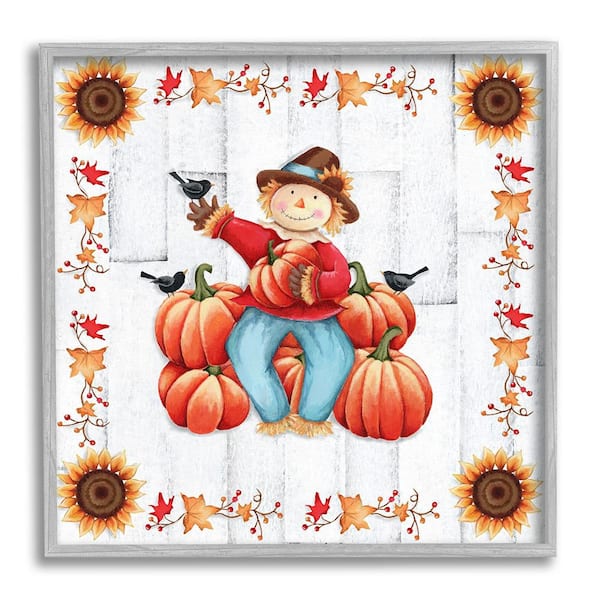 Autumn Scarecrow and Pumpkins by Emma Leach 1-Piece Framed Graphic Print Nature Poster Art Print 12 in. x 12 in.