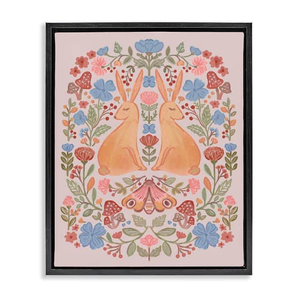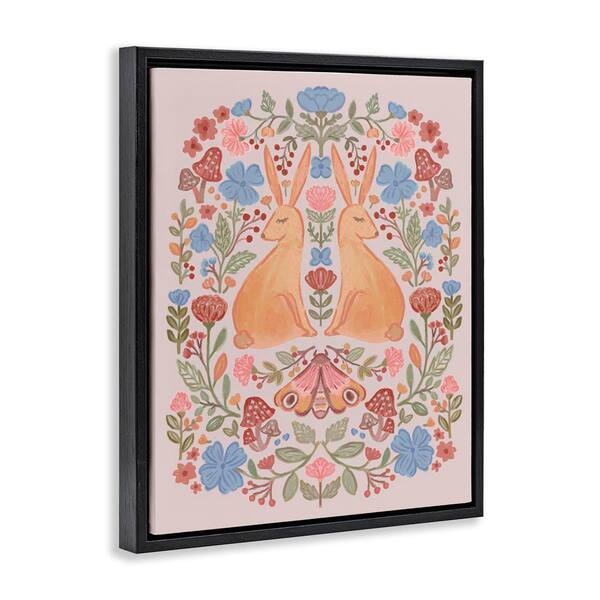 Autumnal Folk Rabbits by Nina Muis Surface Design Black Floater Frame Animal Graphic Art Print 21 in. x 17 in.