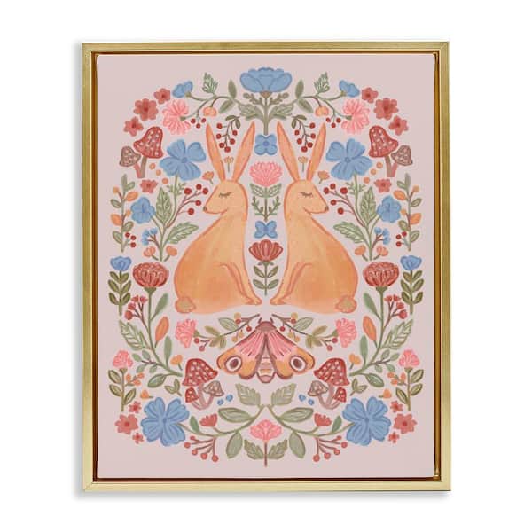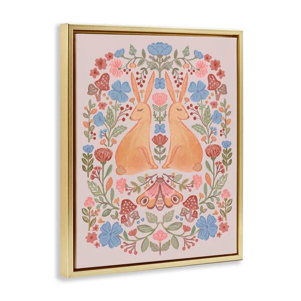 Autumnal Folk Rabbits by Nina Muis Surface Design Gold Floater Frame Animal Graphic Art Print 21 in. x 17 in.