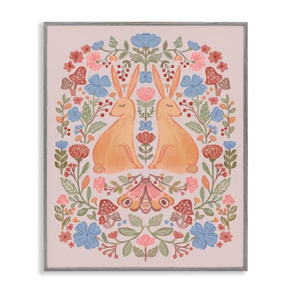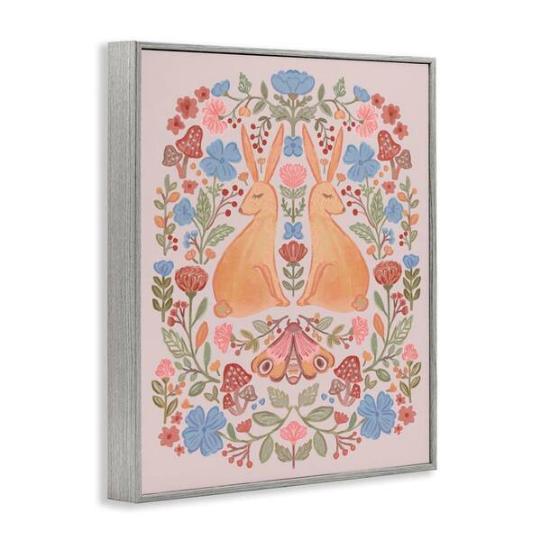 Autumnal Folk Rabbits by Nina Muis Surface Design Gray Framed Animal Giclee Art Print 20 in. x 16 in.