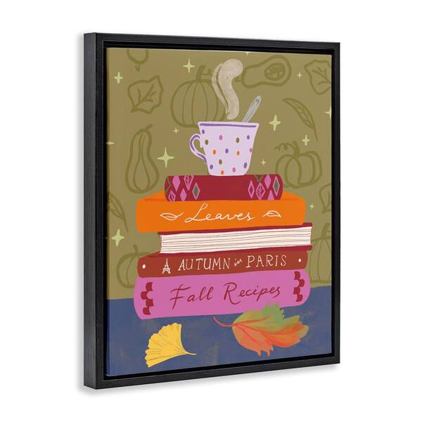 Autumnal Mug on Bookstack by Be Ni La Black Floater Frame Typography Graphic Art Print 21 in. x 17 in.