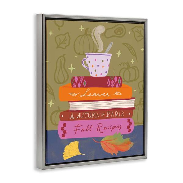 Autumnal Mug on Bookstack by Be Ni La Gray Floater Frame Typography Graphic Art Print 31 in. x 25 in.