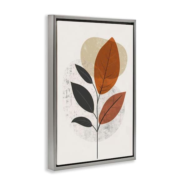 Autumnal Neutral Leaves by LSR Design Studio Gray Floater Frame Nature Graphic Art Print 25 in. x 17 in.