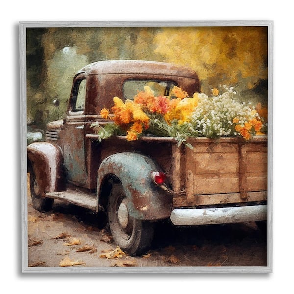 Autumnal Plants in Truck by Riley B 1-Piece Framed Graphic Print Travel Poster Art Print 12 in. x 12 in.