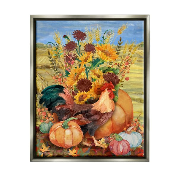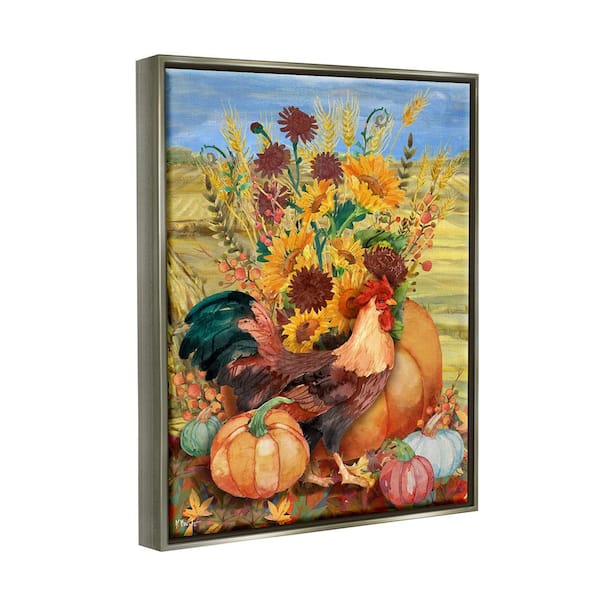 Autumnal Rooster and Sunflowers Paul Brent 1 Piece Floater Frame Graphic Print Animal Poster Art Print 31 in. x 25 in.