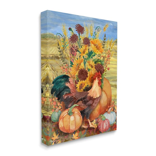 Autumnal Rooster and Sunflowers byPaul Brent 1 Piece Unframed Graphic Print Animal Poster Art Print 30 in. x 24 in.