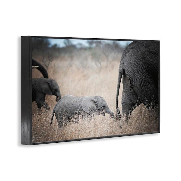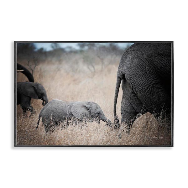 Baby Elephant Strolling by Sharon Vardy Black Framed Animal Giclee Art Print 16 in. x 24 in.