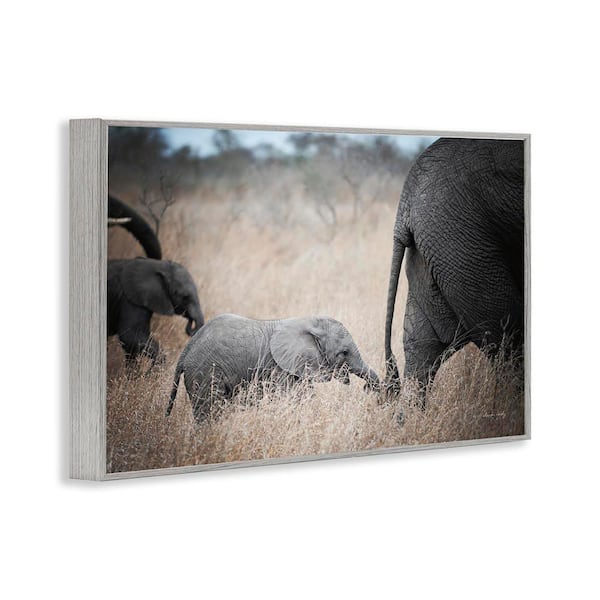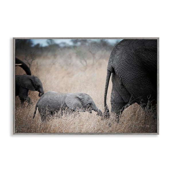 Baby Elephant Strolling by Sharon Vardy Gray Framed Animal Giclee Art Print 12 in. x 18 in.