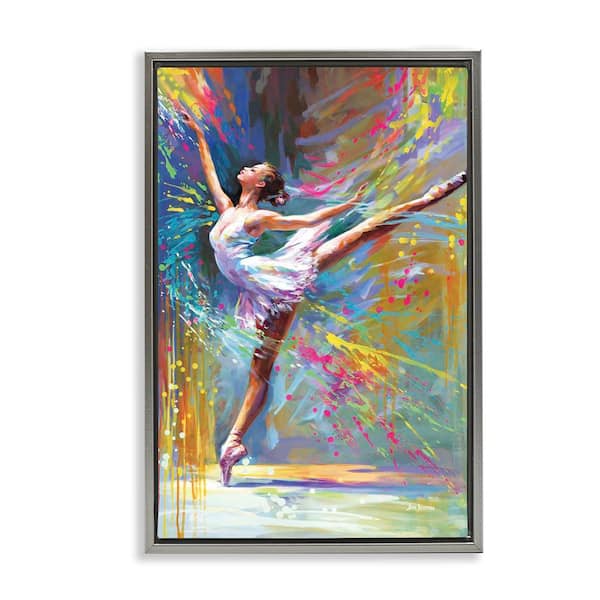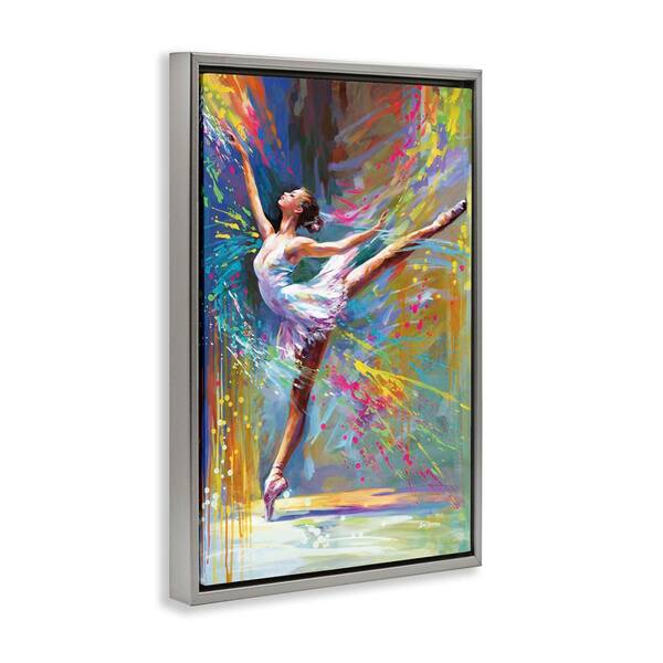 Ballerina with Modern Splash by Leon Devenice Gray Floater Frame People Graphic Art Print 25 in. x 17 in.