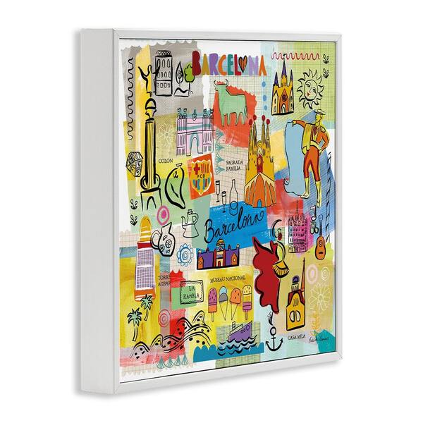 Barcelona Landmarks Spain Traditions by Veronique Charron White Framed Travel Giclee Art Print 12 in. x 12 in.