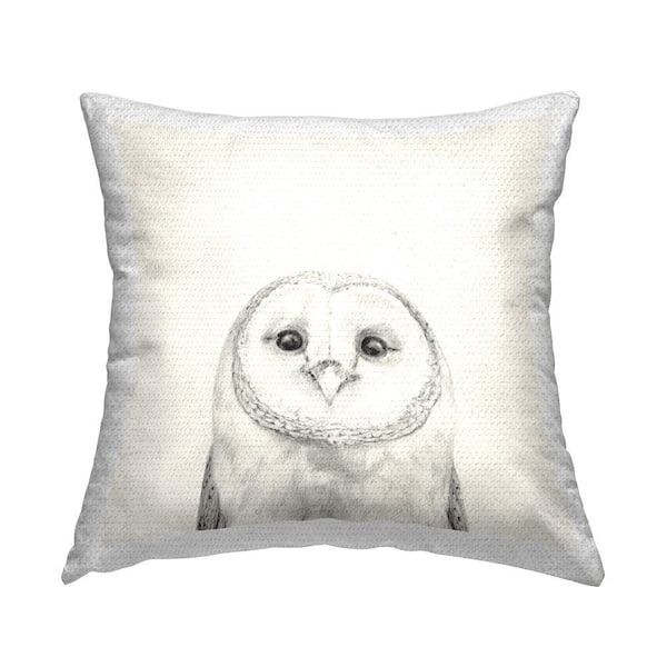 Barn Owl Portrait Soft Grey Illustration Beige Square Outdoor Throw Pillow