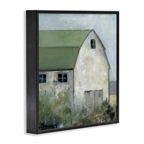 Barn View with Green Roof by Sally Swatland Black Framed Architecture Giclee Art Print 17 in. x 17 in.