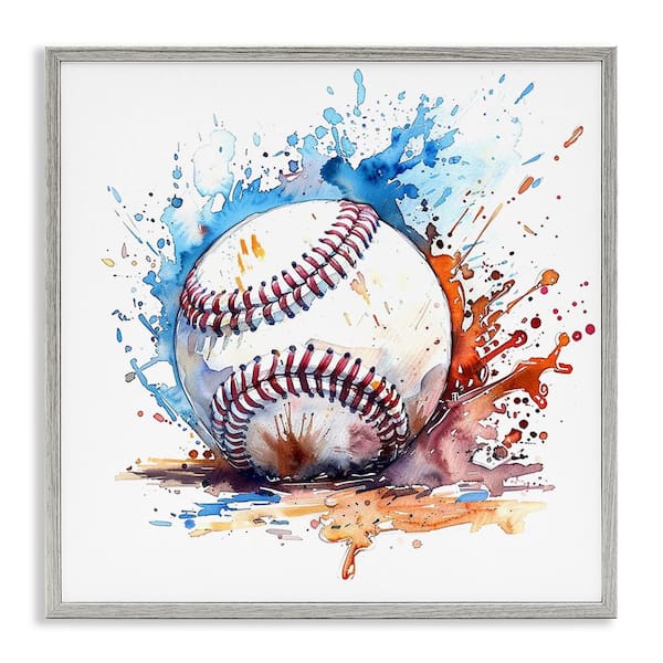 Baseball Chromatic Splash by LSR Design Studio Gray Framed Sports Giclee Art Print 24 in. x 24 in.