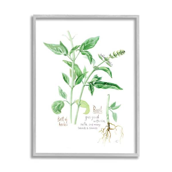 Basil Plant Herbs Watercolor Garden Green by Verbrugge Watercolor Framed Print Nature Texturized Art 24 in. x 30 in.