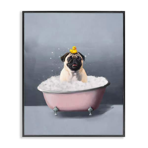 Bathing Pug with Rubber Duck by Svetlana Aleynikova Black Framed Animal Giclee Art Print 14 in. x 11 in.