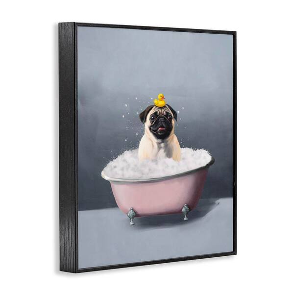 Bathing Pug with Rubber Duck by Svetlana Aleynikova Black Framed Animal Giclee Art Print 30 in. x 24 in.