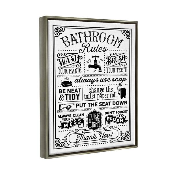 Bathroom Rules Diagram List by Lettered and Lined 1-Piece Gray Floater Frame Abstract Graphic Art Print 17 in. x 21 in.