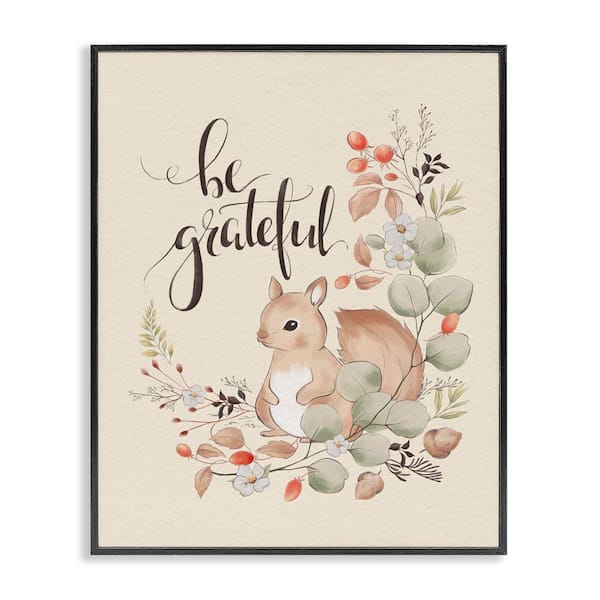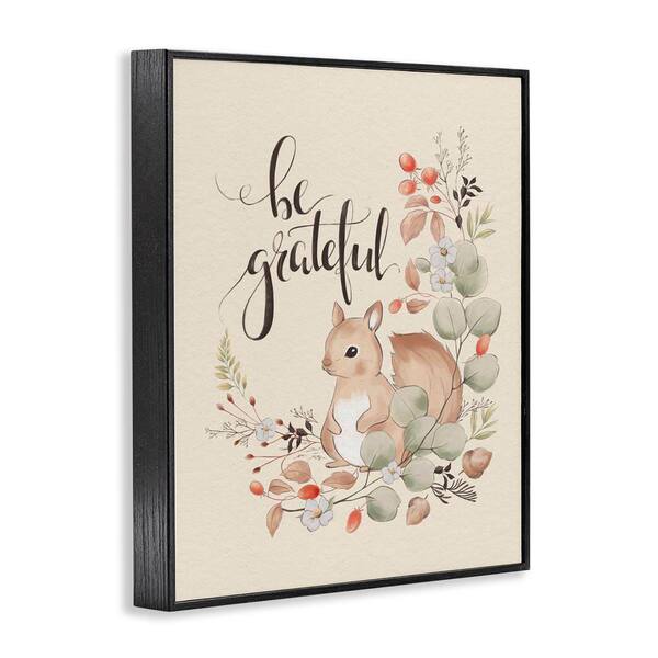 Be Grateful Squirrel by Andrea Jasid Grassi Black Framed Animal Giclee Art Print 14 in. x 11 in.