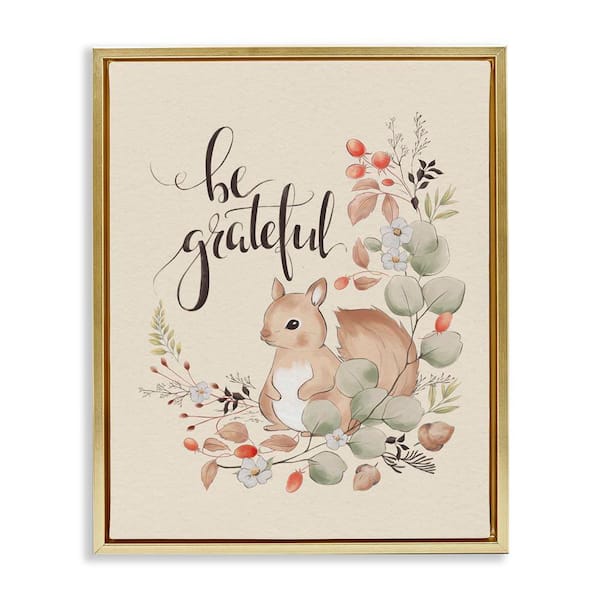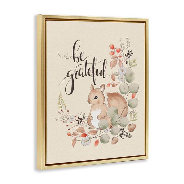 Be Grateful Squirrel by Andrea Jasid Grassi Gold Floater Frame Animal Graphic Art Print 31 in. x 25 in.