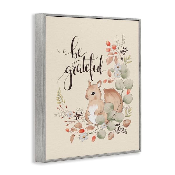 Be Grateful Squirrel by Andrea Jasid Grassi Gray Framed Animal Giclee Art Print 14 in. x 11 in.