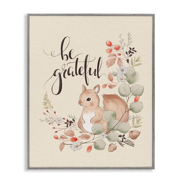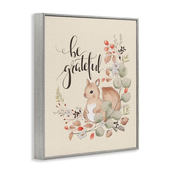 Be Grateful Squirrel by Andrea Jasid Grassi Gray Framed Animal Giclee Art Print 30 in. x 24 in.