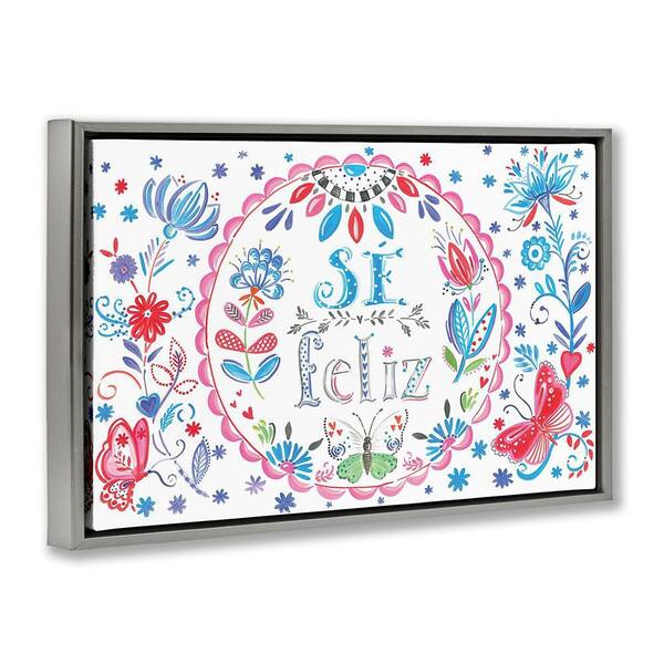 Be Happy Floral Butterflies by SD Graphics Studio Gray Floater Frame Typography Graphic Art Print 21 in. x 31 in.