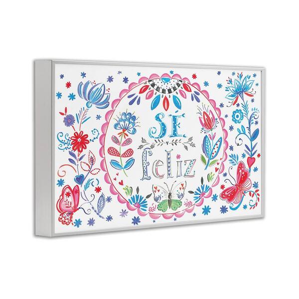 Be Happy Floral Butterflies by SD Graphics Studio White Framed Typography Giclee Art Print 16 in. x 24 in.