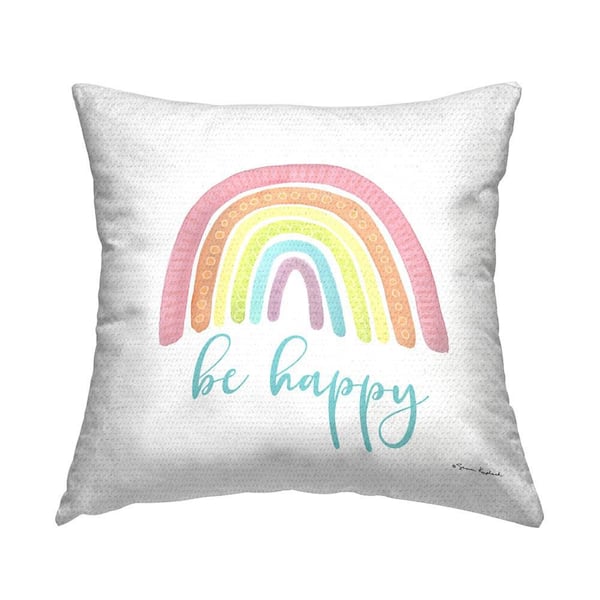 Be Happy with Rainbow Outdoor Printed Throw Pillow by Sharon Kuplack
