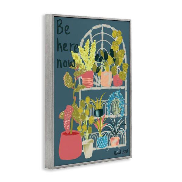 Be Here Now Plant Shelf by Hannah Byatt Gray Framed Nature Giclee Art Print 24 in. x 16 in.