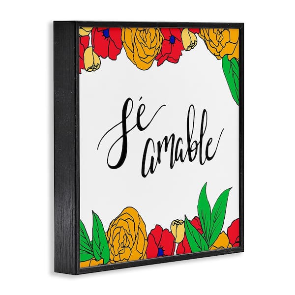 Be Kind Tropical Floral by SD Graphics Studio Black Framed Typography Giclee Art Print 24 in. x 24 in.