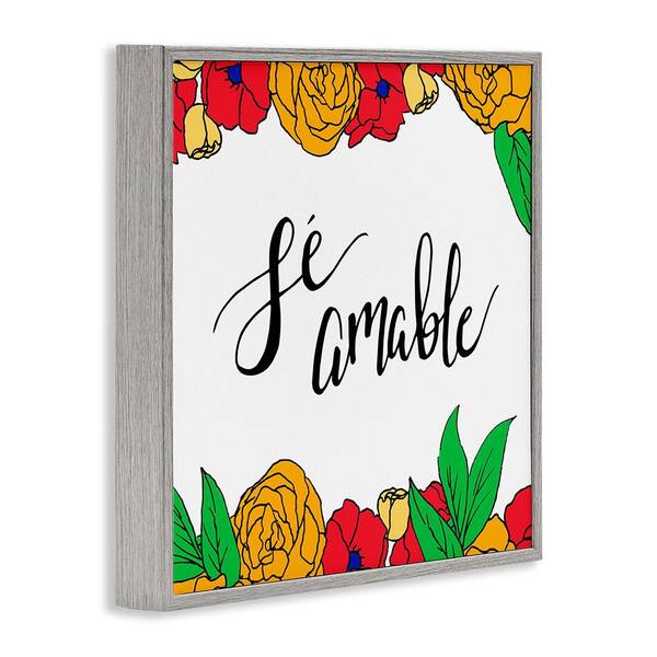 Be Kind Tropical Floral by SD Graphics Studio Gray Framed Typography Giclee Art Print 24 in. x 24 in.